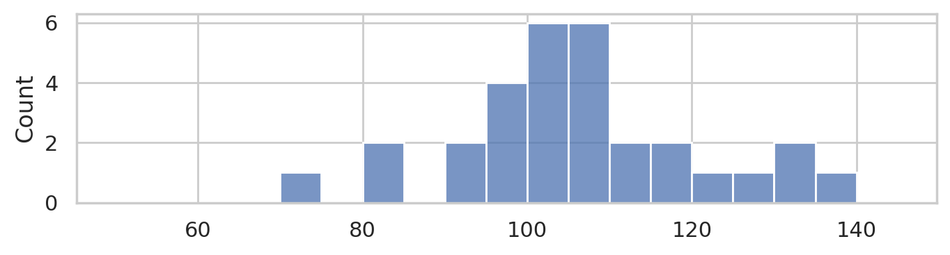 ax = sns.histplot(xbars, bins=bins, color="C1")