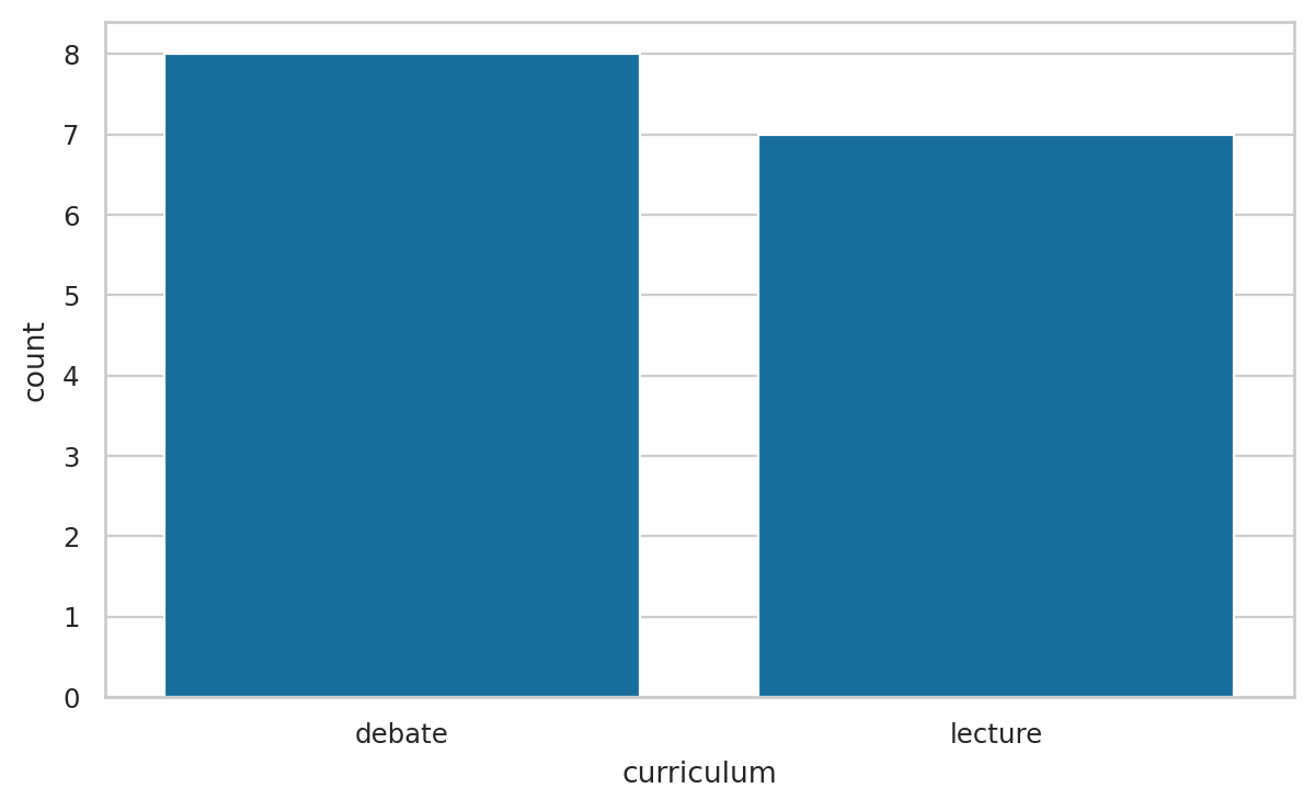 Make a bar chart displaying the frequencies of the curriculum variable.