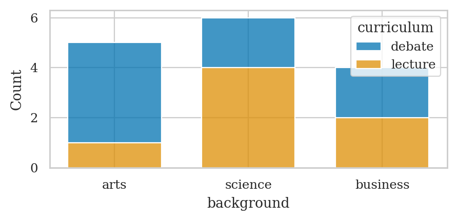 # sns.displot(data=students, x="background", hue="curriculum", multiple="stack", shrink=0.8)