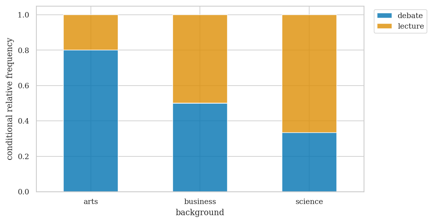 plt.ylabel("conditional relative frequency");
