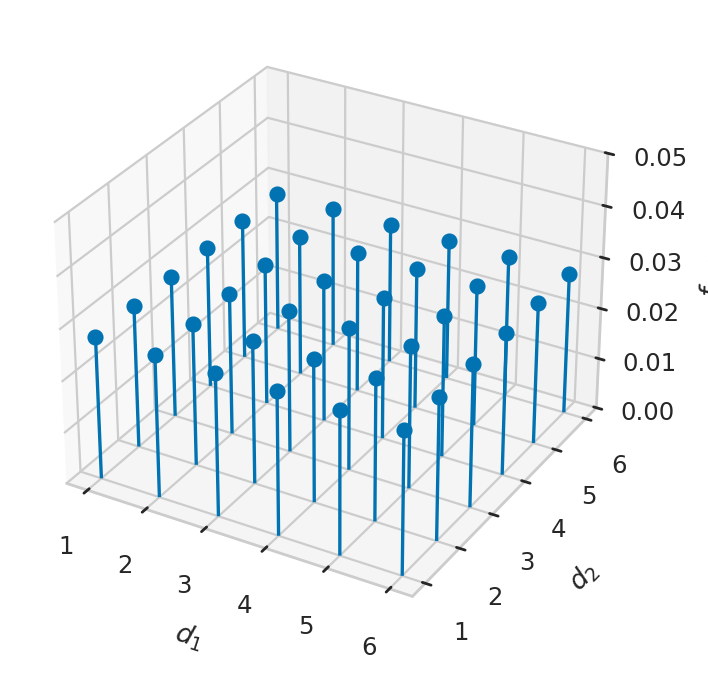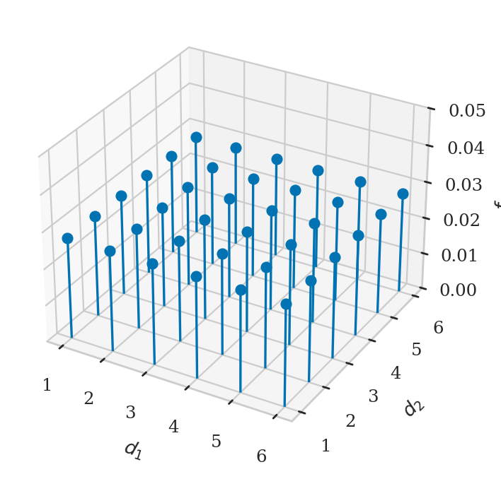 ax.stem(xs, ys, fXYs, basefmt=" ")