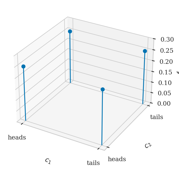 f_{X|Y}(\texttt{heads}|4) = \frac{ f_{Y|X}(4|\texttt{heads}) f_X(\texttt{heads}) }{ f_Y(4) }