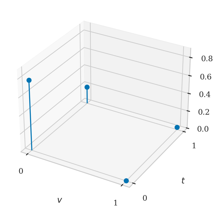 ax.stem(vs, ts, fVTs, basefmt=" ", bottom=0.0)