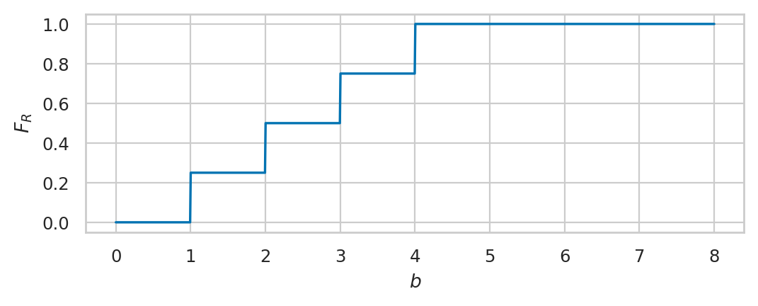 the function is only defined for the sample space \(\mathcal{R} = \{1,2,3,4\}\).
