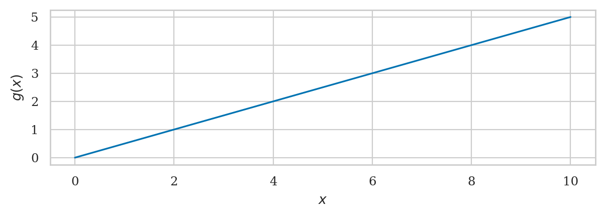 For example, the code cell below defines the function \(g(x)=\frac{1}{2}x\),