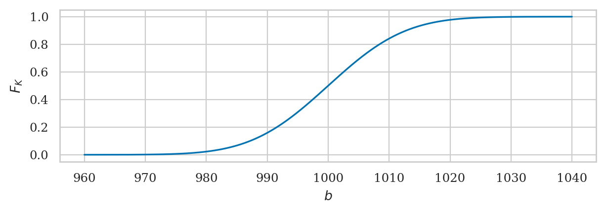 We can verify that \(\Pr(\{K \leq 993.255\}) = 0.25\) by calling rvK.cdf with that value.