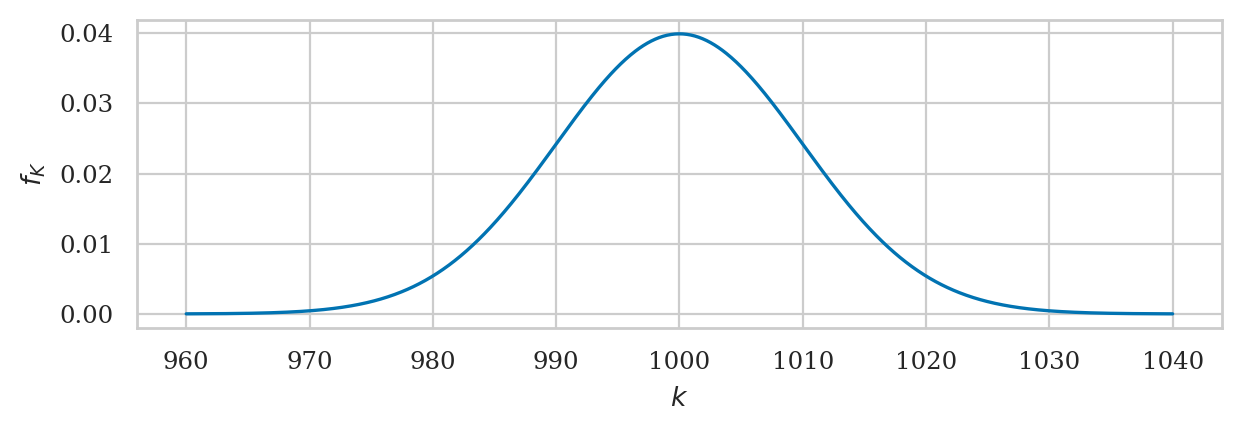 p_1 = Pr( K in [990.0, 1010.0] ) = 0.683
