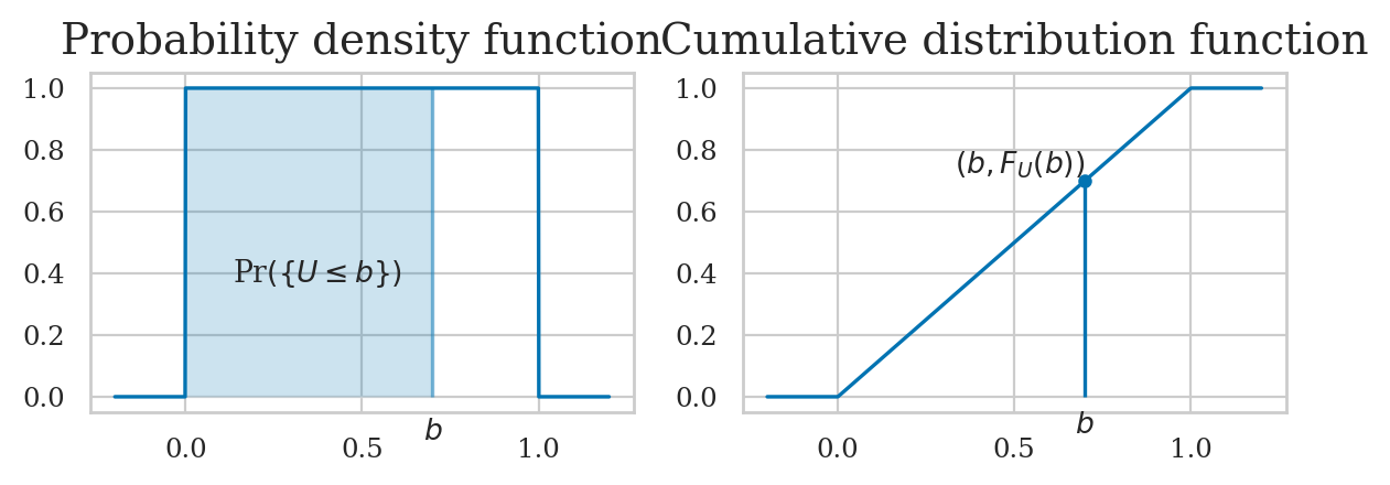 the probability of the event \(\{ \texttt{a} \leq U \leq \texttt{b} \}\).