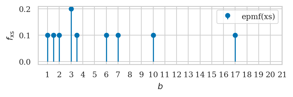 xs = [1, 1.5, 2, 3, 3, 3.5, 6, 7, 10, 17]