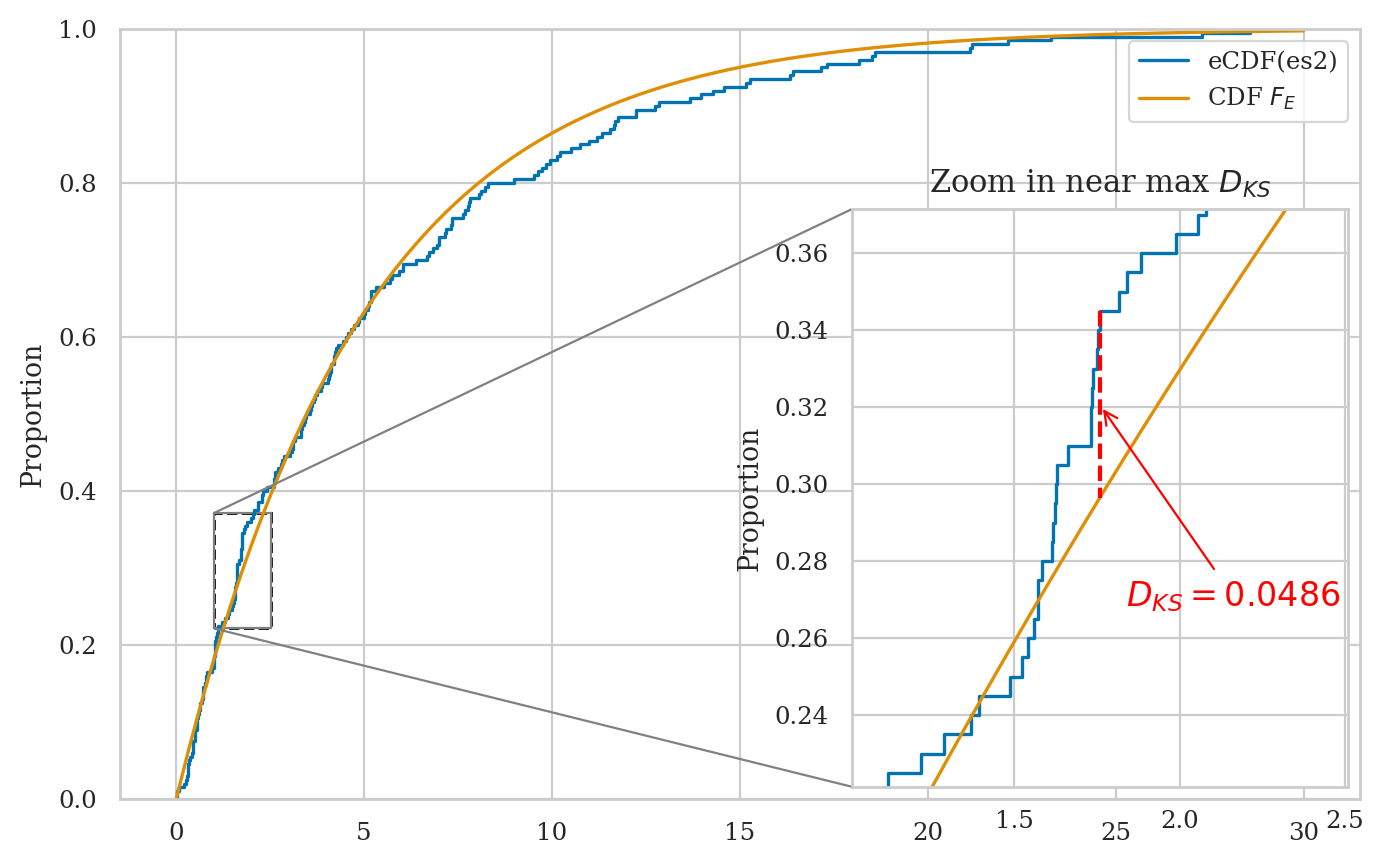 Let’s jump right ahead and compute the KS distance for the data and distribution of interest.