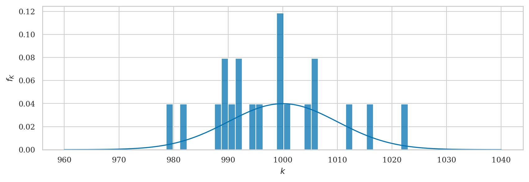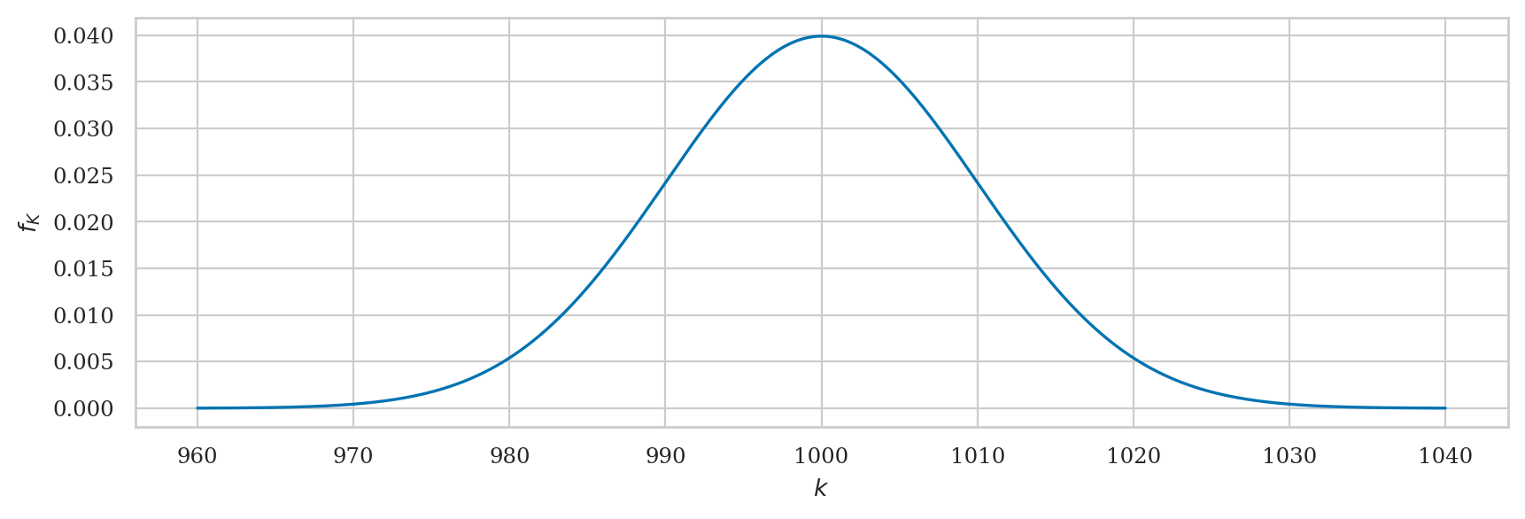 ax = plot_pdf(rvTKbar, xlims=[993,1007], color=blue)