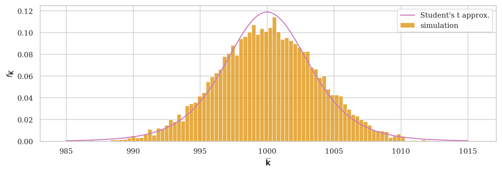 rvTKbar = tdist(df=n-1, loc=muK, scale=sigmaK/np.sqrt(n))