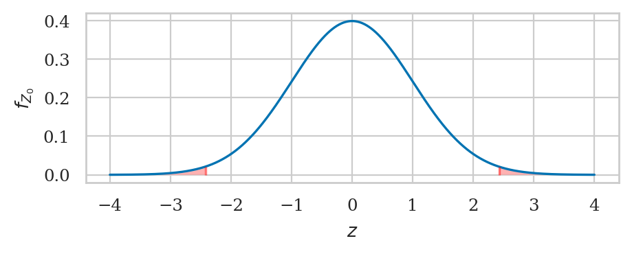 We’ll perform \(p\)-value calculations based on the standardized test statistic $\( z_{\mathbf{k}} = \frac{ \overline{\mathbf{k}} - \mu_{K_0} }{ \stderr{\overline{\mathbf{k}},0} }. \)$
