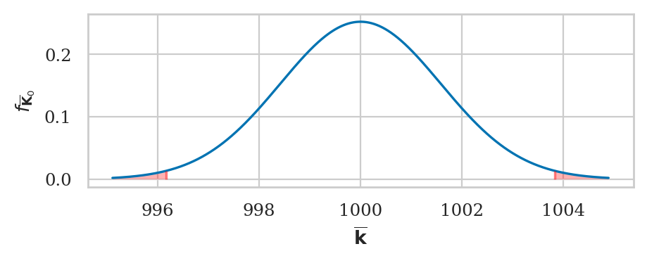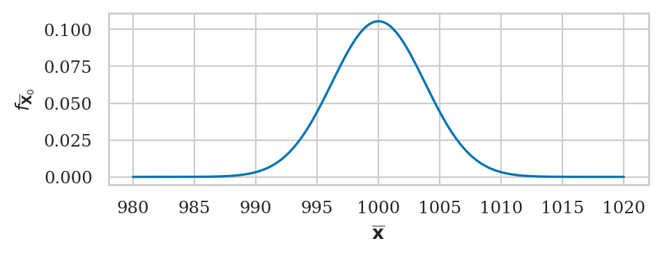 We’ll use the kombucha scenario for all the examples in this section. Recall, the probability distirbution of the kombucha volume is described by the theoretical model \(K_0 \sim \mathcal{N}(\mu_{K_0} = 1000, \sigma_{K_0}=10)\) when the production line is working as expected.
