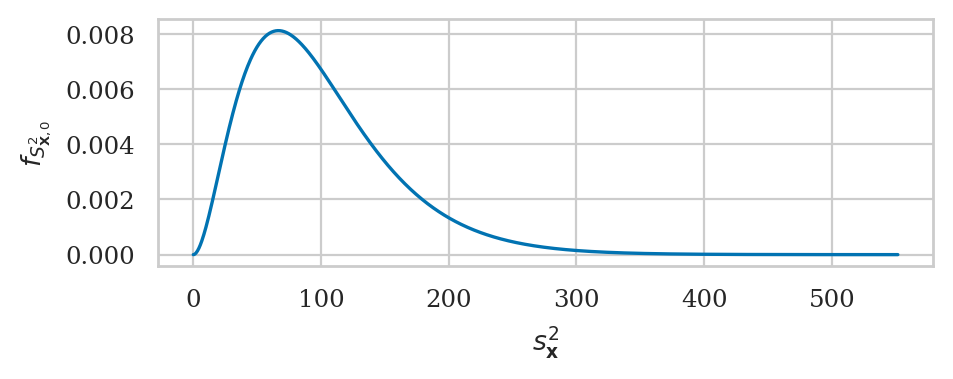 If the theoretical distribution under the null hypothesis is normal \(K_0 \sim \mathcal{N}(\mu_{K_0}, \sigma_{K_0})\), then the sampling distribution of variance for samples of size \(n\) is described by a scaled chi-square distribution: