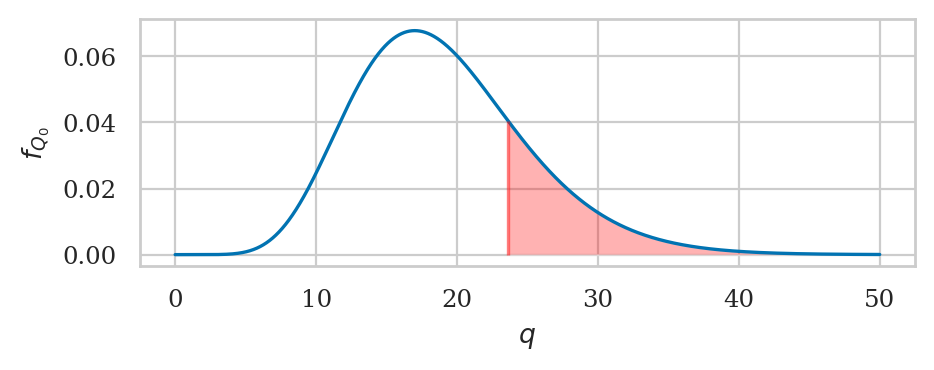 We can now compute the \(q\)-statistic, which is the observed sample variance estimate \(s_{\mathbf{k}_{02}}^2 = 124.32\) divided by the scale factor \(\tfrac{ \sigma_{K_0}^2 }{ n-1 }\).