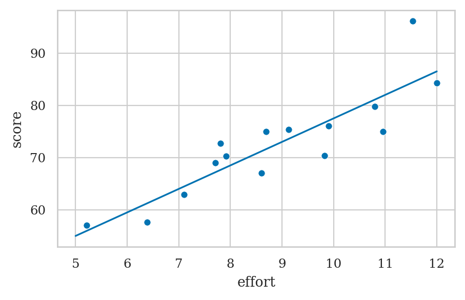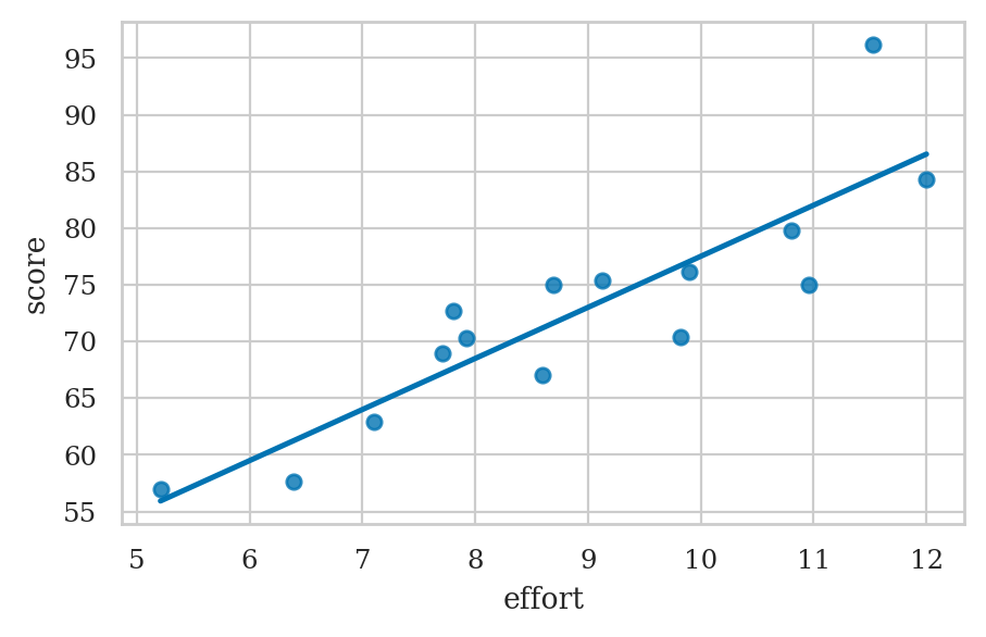 # sns.regplot(x=efforts, y=scores, ci=None);