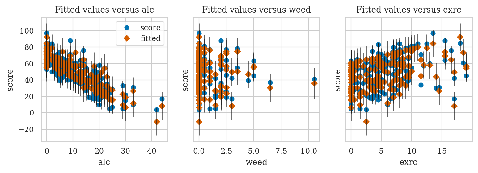 formula = "score ~ 1 + alc + weed + exrc"
