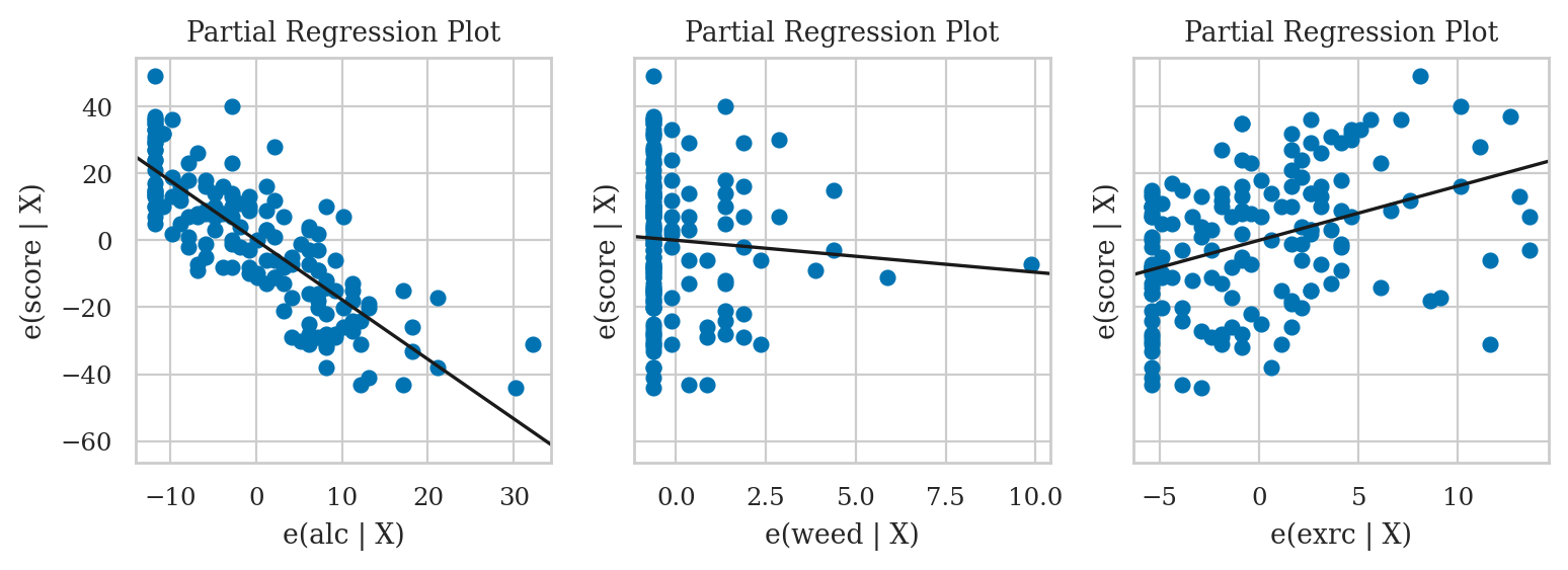 plot_partregress("score", "exrc", exog_others=[], data=doctors, obs_labels=False, ax=ax3)