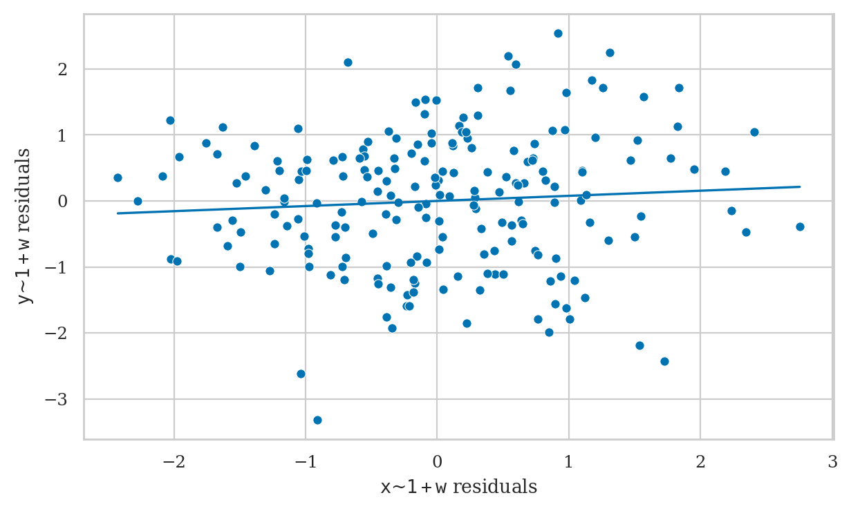 lm1b = smf.ols("y ~ 1 + x + w", data=df1).fit()
