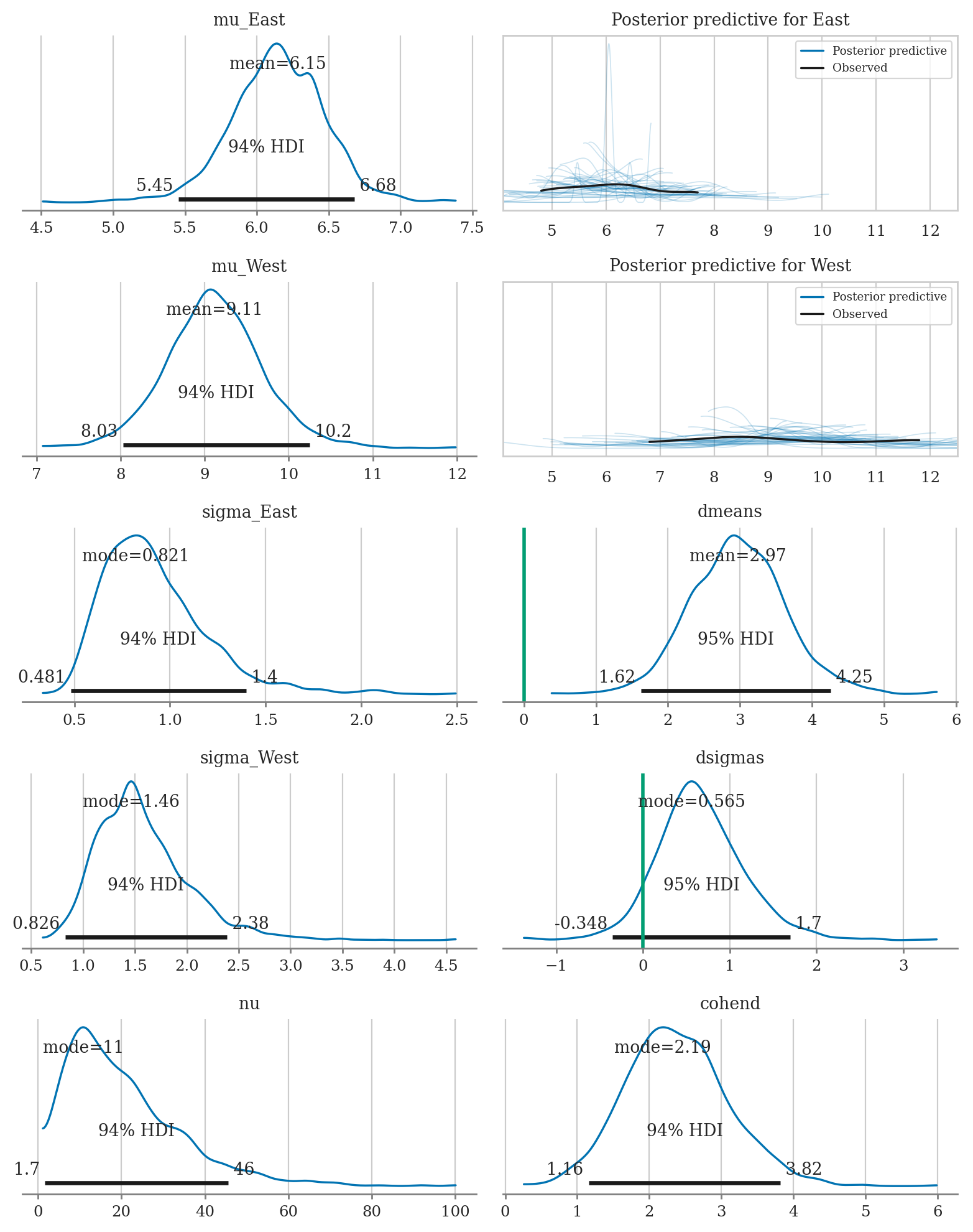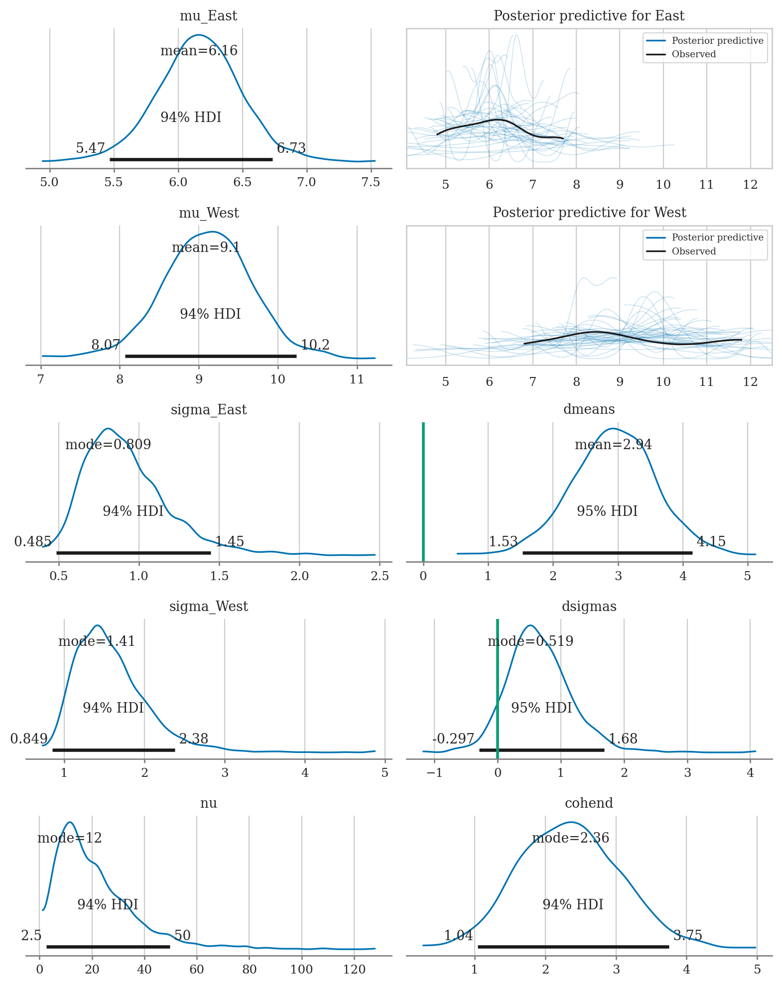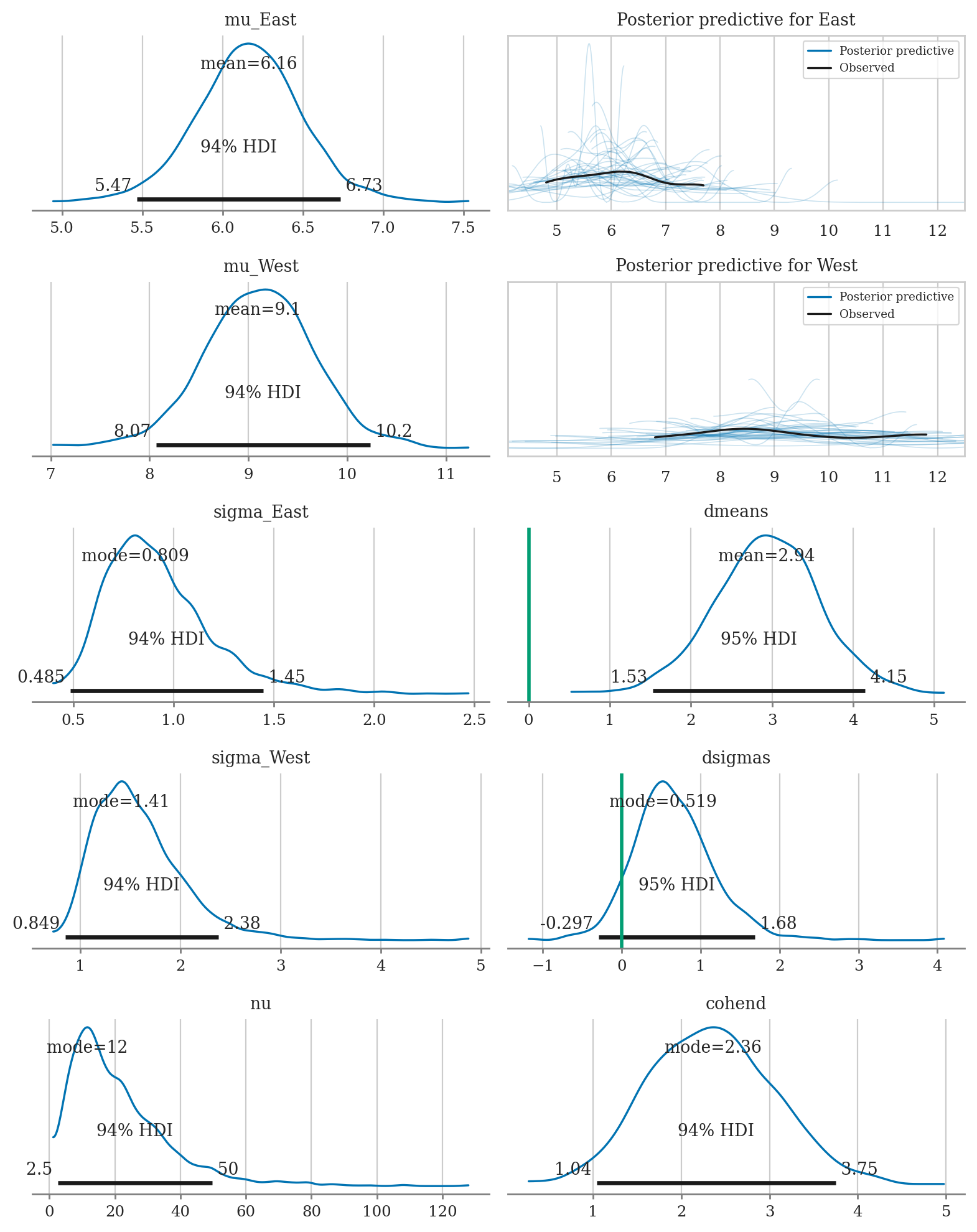 # plot_dmeans_stats(mod5, idata5, ppc_xlims=None);