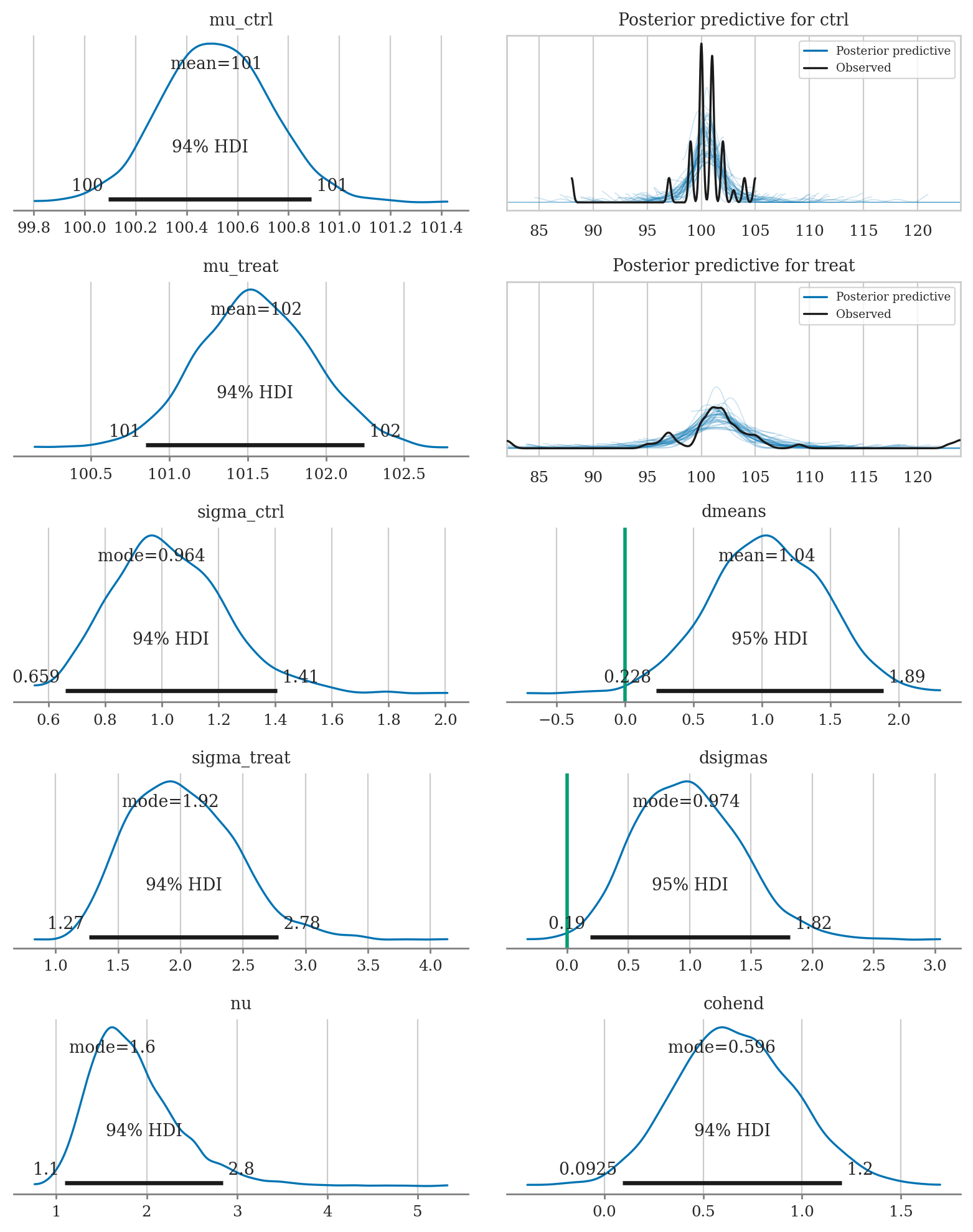 # plot_dmeans_stats(mod4, idata4, ppc_xlims=None);