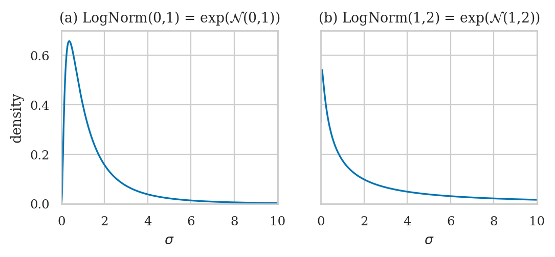ax2.set_title(f'(b) LogNorm({mu},{sigma}) = exp($\\mathcal{{N}}$({mu},{sigma}))')