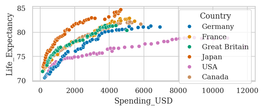 | Year | Country | Spending_USD | Life_Expectancy | |